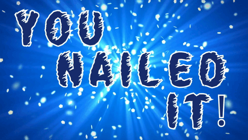 Animated 'You Nailed It!' message on a sparkling blue background, associated with Svetmel Carpediem.