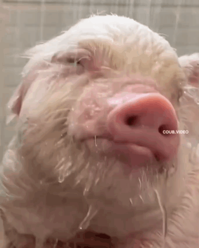 A cute pig enjoys a refreshing shower, closing its eyes in contentment.