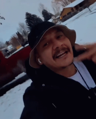 Doggface208, also known as Nathan Apodaca, smiles at the camera in a snowy outdoor setting, exuding a cool vibe.