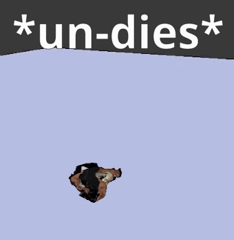 An animated Swas Sloth character 'un-dies' and reforms into a figure wearing a suit and hat.