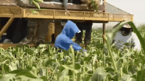 A worker in a corn field harvesting sweet corn, likely for elote, in Olathe, Colorado.