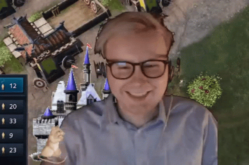 Swimmy Swimmyswag, a man in glasses, smiles and makes the 'L' sign while playing a video game.