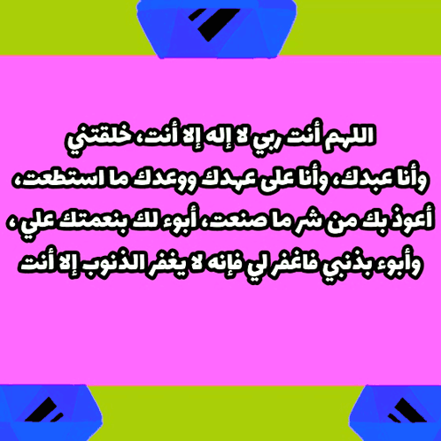 A beautiful image displaying 'Sayyid al-Istighfar' (The Master of Seeking Forgiveness) in Arabic calligraphy.