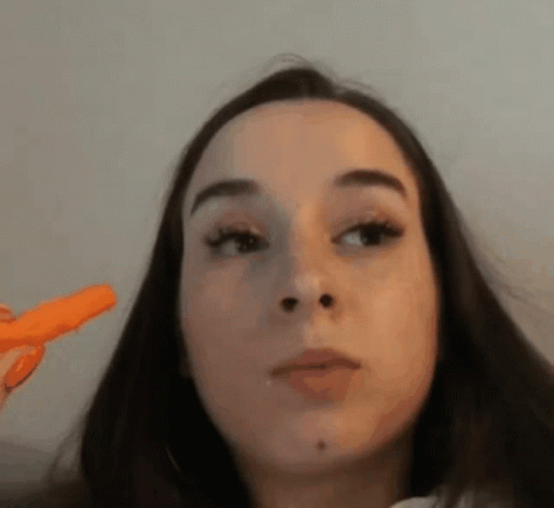 Sylwia Lipka enjoys a healthy snack, chewing on a carrot with a smile.