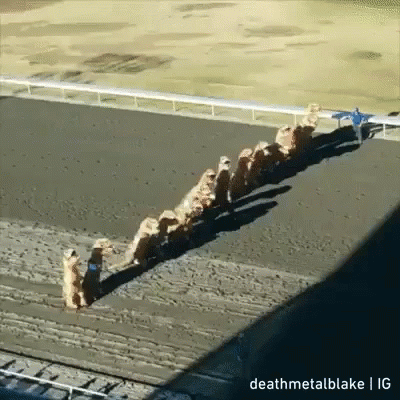 A group of people in inflatable T-Rex costumes hilariously attempt to race on a track, struggling to run.