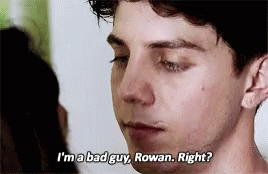 Lukas Gage's character asks Rowan Fricks if he's a bad guy in a scene from the series Tagged.