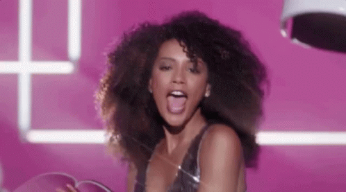 Taís Araújo, with vibrant curly hair, stands against a pink background, declaring 'Esse brilho é meu'.
