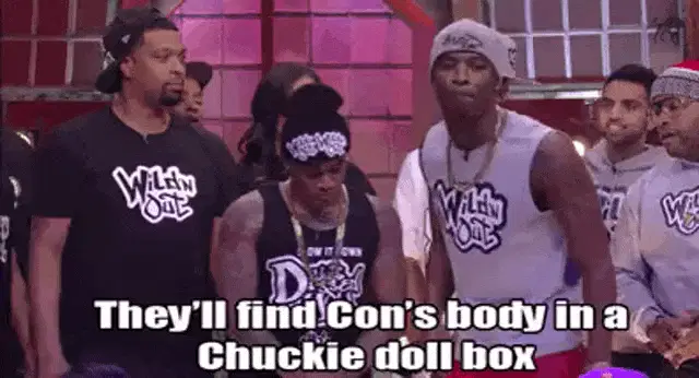 Tamar reacts with a dramatic 'Girrrrl!' while sitting on a couch, looking surprised.