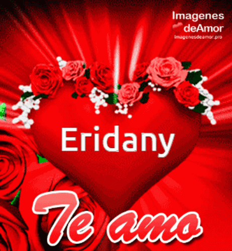 A vibrant red heart with the name 'Eridany' and the phrase 'Te amo' (I love you) surrounded by roses.