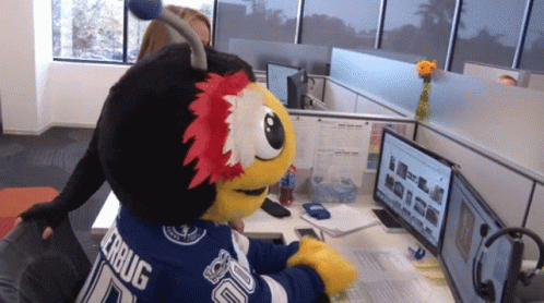 Tampa Bay Lightning mascot Thunderbug is seen working diligently at an office computer.