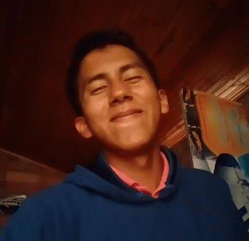 Tan Bobo, a young man in a blue hoodie and pink shirt, smiles with his eyes closed.