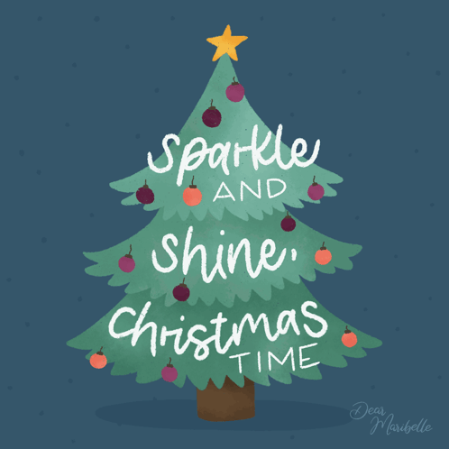 A festive Tannenbaum Christmas tree adorned with ornaments, featuring the message 'Sparkle and Shine Christmas Time'.