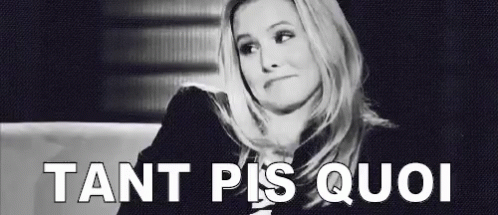 A woman with a knowing expression, accompanied by the French phrase 'Tant Pis Quoi'.