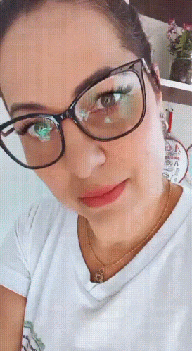 Tati Rossatti Piacar smiles and winks at the camera, wearing glasses and a gold necklace.