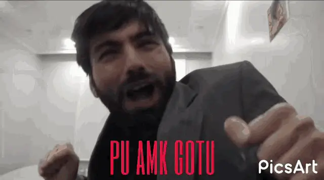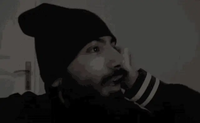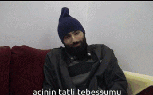 A man, possibly Sercank, with a beard and a blue hat smiles sadly, with the caption 'the sweet smile of pain'.