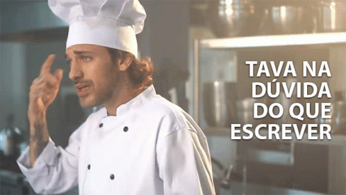 Igor, a chef, expresses doubt about what to write in a kitchen setting, with text on screen.
