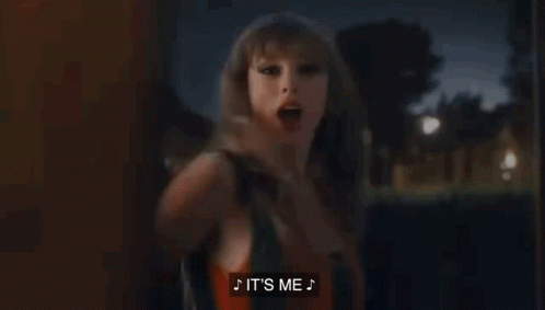 Taylor Swift performs the iconic 'I'm the problem, it's me' line from her 'Anti-Hero' music video.