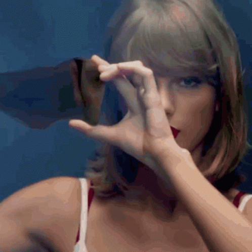 Taylor Swift, a global music icon, in a white bra, holding a broken mirror piece to her face, reflecting her eye.