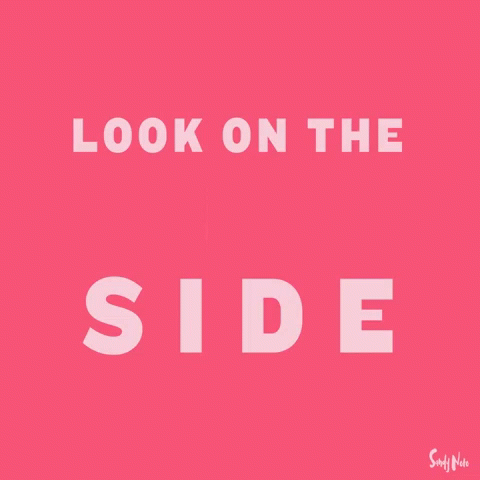 Animated text 'LOOK ON THE BRIGHT SIDE' appears on a vibrant pink background with a glowing effect.