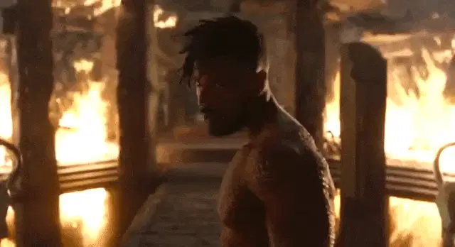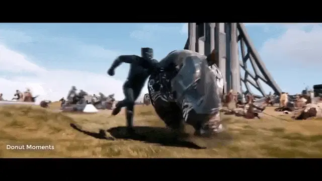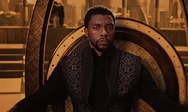 T'Challa, as Black Panther, sits regally on his ornate golden throne, embodying the king of Wakanda.