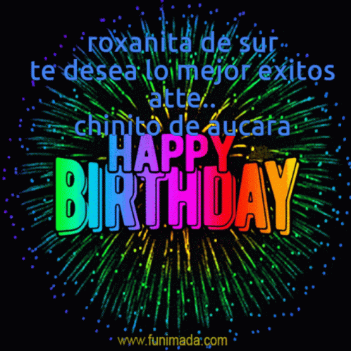 Roxanita de Sur and Chinito de Aucara send a colorful Happy Birthday wish with sparkling effects.