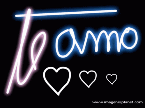 A vibrant neon sign glows with the words 'Te Amo' (I Love You), surrounded by small heart shapes.