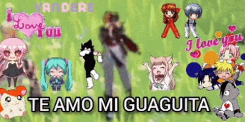 Chibi anime characters dance on a green background with the Spanish text 'Te Amo Mi Guaguita' (I Love You My Little Baby).