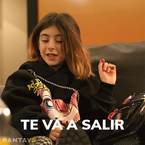 A young girl on a couch says the Spanish phrase "Te va a salir muy cara" from a Pantaya production.