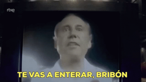 A man with wide eyes on an old TV screen, displaying the Spanish phrase 'Te Vas A Enterar, Bribón'.