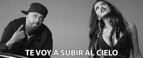 Nicky Jam and a woman in a black and white scene with the text 'Te Voy A Subir Al Cielo'.