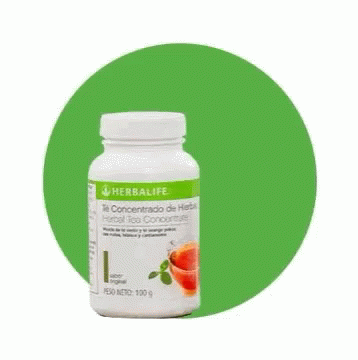 Herbalife Herbal Tea Concentrate bottle displayed next to a glass of refreshing amber-colored tea.