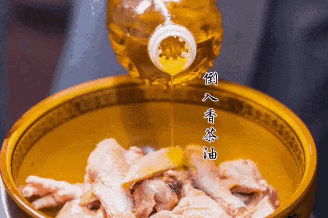 A person demonstrates mixing Tea Seed Meal Biosenca, an aquaculture product, into a bowl of liquid.