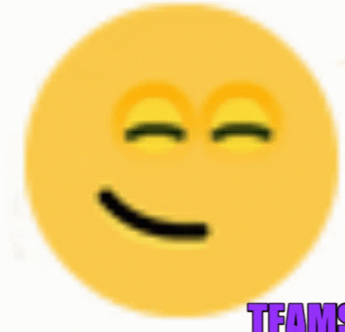 A yellow smirking emoji with closed eyes and a slight smile, with the word "TEAMS" partially visible below it.