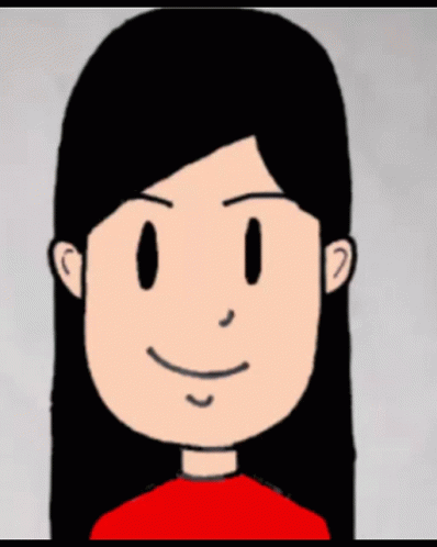 Animated girl with black hair and red shirt, eyes and mouth moving.