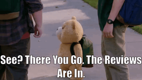 Ted the teddy bear from the Ted TV Show delivers the line 'See? There You Go. The Reviews Are In.'