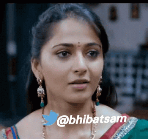Anushka Shetty's charming smile in a Telugu comedy scene, featuring her expressive face.