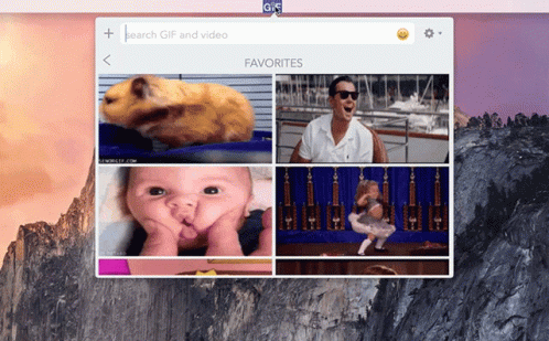 A screen recording shows a Tenor GIF search for 'HI', displaying a hamster GIF.