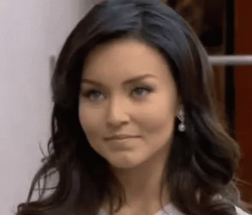 Teresa makes a thoughtful 'hmm' expression, then subtly shifts her gaze, showing a curious reaction.