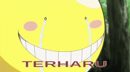 Koro Sensei from Assassination Classroom is emotionally touched, shedding tears with a wide smile.