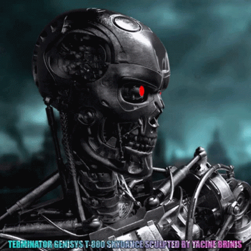Detailed sculpt of the Terminator Genisys T-800 endoskeleton by Yacine Brinis, featuring red eyes.