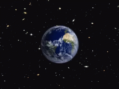 The Earth, our home planet, seen from outer space, surrounded by countless stars and swirling clouds.
