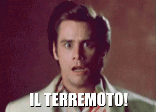 Man reacting with extreme fear and shock to 'IL TERREMOTO!' (The Earthquake!) text.