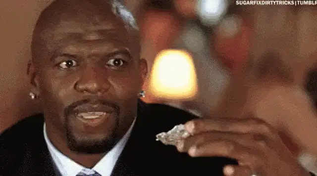 Terry Crews from Brooklyn Nine-Nine dramatically asks 'WHY?!' in a purple sweater.