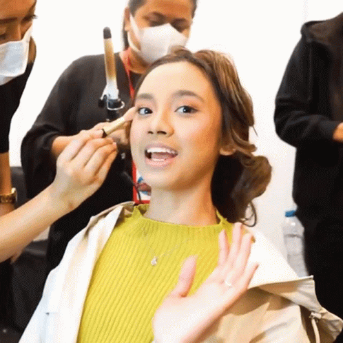 Lyodra, the Indonesian singer, smiles and waves while getting her makeup done, radiating pure joy.
