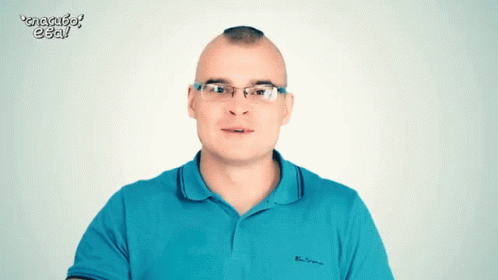 Tesak (Максим Марцинкевич) smiles and gives a thumbs up, wearing glasses and a blue shirt.