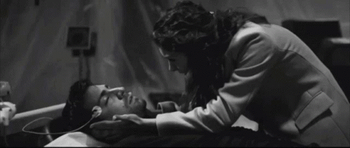 Zehra tenderly touches Serdar's face in an emotional black and white scene from Teskilat.