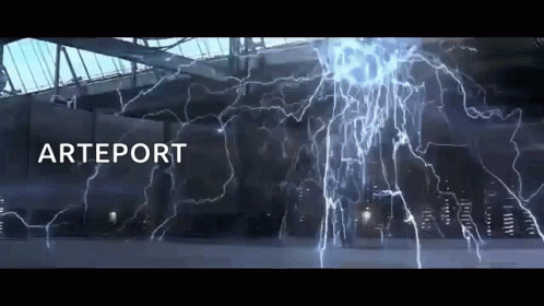 Intense lightning display with 'ARTEPORT' text, reminiscent of Tesla's 'The Prestige'.