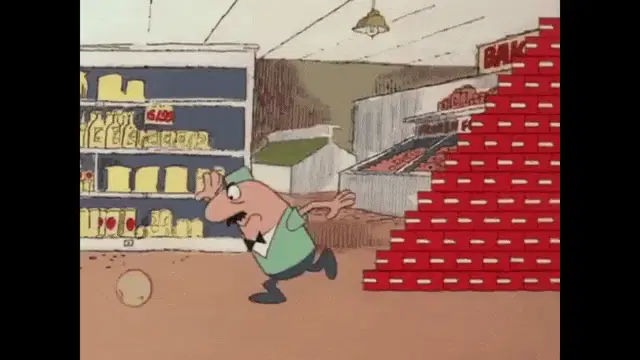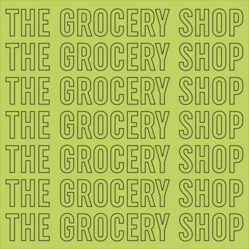 Animated text displaying "THE GROCERY SHOP" in varying styles on a vibrant green background.
