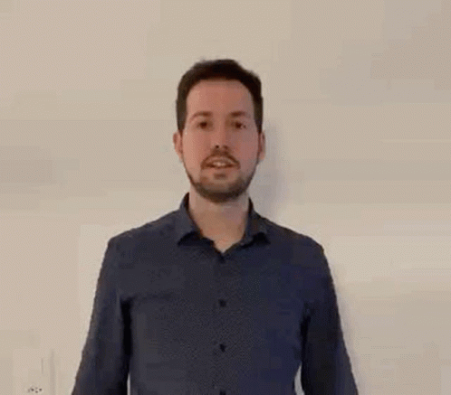 A man in a blue shirt holds a 'Danke' sign and gives a thumbs up, expressing gratitude.
