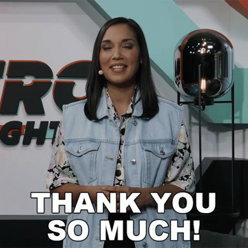 Stefanie Langer expresses gratitude, saying 'Thank You So Much!' with a smile.